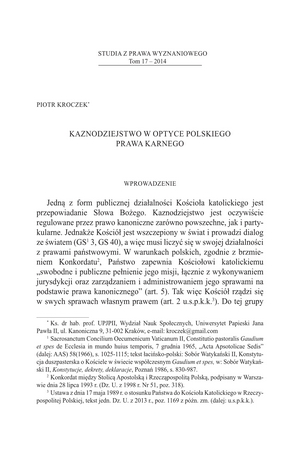 Kaznodziejstwo w optyce polskiego prawa karnegoKaznodziejstwo w optyce polskiego prawa karnego
