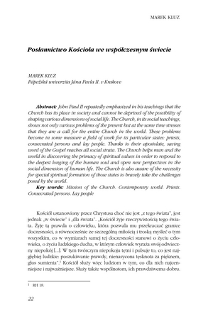 Słowa kluczowe: Misja Kościoła , Kapłani , Osoby konsekrowane