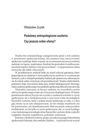 Podstawy antropologiczne zufania. Czy jeszcze sobie ufamy?Podstawy antropologiczne zufania. Czy jeszcze sobie ufamy?