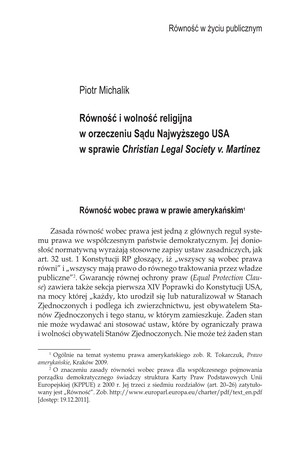 Równość i wolność religijna w orzeczeniu Sądu Najwyższego USA w sprawie Christian Legal Society v. MartinezRówność i wolność religijna w orzeczeniu Sądu Najwyższego USA w sprawie Christian Legal Society v. Martinez