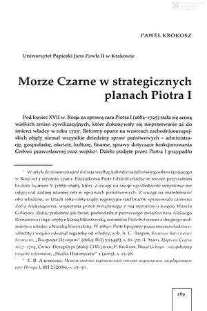 Morze Czarne w strategicznych planach Piotra IMorze Czarne w strategicznych planach Piotra I