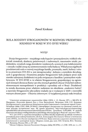 Rola rodziny Stroganowów w rozwoju przemysłu solnego w Rosji w XVI-XVIII wiekuRola rodziny Stroganowów w rozwoju przemysłu solnego w Rosji w XVI-XVIII wieku
