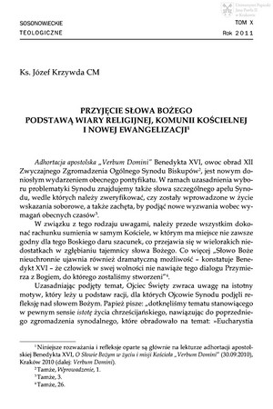 Przyjęcie Słowa Bożego podstawą wiary religijnej, komunii kościelnej i nowej ewangelizacjiPrzyjęcie Słowa Bożego podstawą wiary religijnej, komunii kościelnej i nowej ewangelizacji