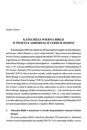 Katecheza wierna Biblii w świetle adhortacji Verbum DominiKatecheza wierna Biblii w świetle adhortacji Verbum Domini