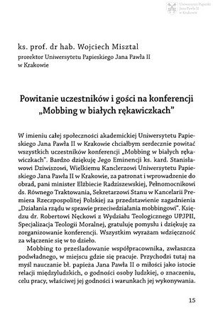 Powitanie uczestników i gości na konferencji "Mobbing w białych rękawiczkach"Powitanie uczestników i gości na konferencji "Mobbing w białych rękawiczkach"