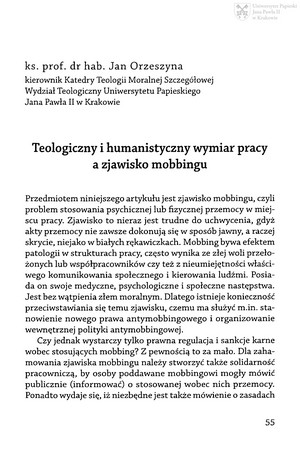 Teologiczny i humanistyczny wymiar pracy a zjawisko mobbinguTeologiczny i humanistyczny wymiar pracy a zjawisko mobbingu