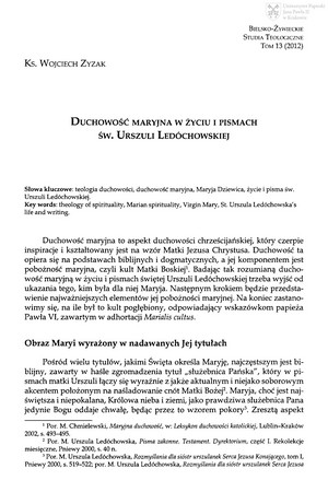 Duchowość maryjna w życiu i pismach św. Uruszuli LedóchowskiejDuchowość maryjna w życiu i pismach św. Uruszuli Ledóchowskiej