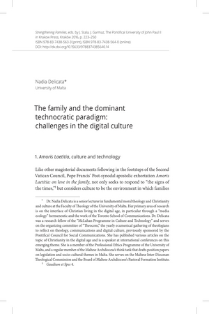 The family and the dominant technocratic paradigm : challenges in the digital cultureThe family and the dominant technocratic paradigm : challenges in the digital culture