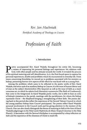 Słowa kluczowe: Wojtyła, Karol (1920-2005) - poezja , Jan Paweł II (papież ; 1920-2005) - poezja , Wyznanie Wiary