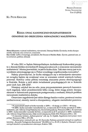 Kilka uwag kanoniczno-duszpasterskich odnośnie do orzeczenia nieważności małżeństwaKilka uwag kanoniczno-duszpasterskich odnośnie do orzeczenia nieważności małżeństwa