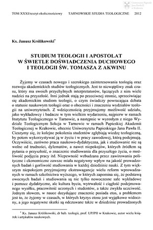 Studium teologii i apostolat w świetle doświadczenia duchowego i teologii św. Tomasza z AkwinuStudium teologii i apostolat w świetle doświadczenia duchowego i teologii św. Tomasza z Akwinu