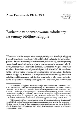 Budzenie zapotrzebowania młodzieży na tematy biblijno - religijneBudzenie zapotrzebowania młodzieży na tematy biblijno - religijne