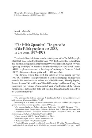 “The Polish Operation”. The genocide of the Polish people in the USSR in the years 1937–1938“The Polish Operation”. The genocide of the Polish people in the USSR in the years 1937–1938