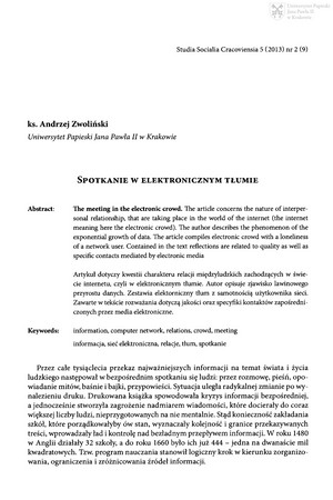 Słowa kluczowe: Informacja , Sieć elektroniczna , Relacje , Spotkanie
