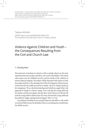 Violence against children and youth : the consequences resulting from the civil and church lawViolence against children and youth : the consequences resulting from the civil and church law