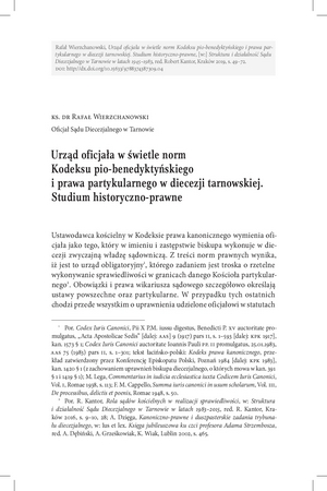 Urząd oficjała w świetle norm Kodeksu pio-benedyktyńskiego i prawa partykularnego w diecezji tarnowskiej : studium historyczno-prawneUrząd oficjała w świetle norm Kodeksu pio-benedyktyńskiego i prawa partykularnego w diecezji tarnowskiej : studium historyczno-prawne