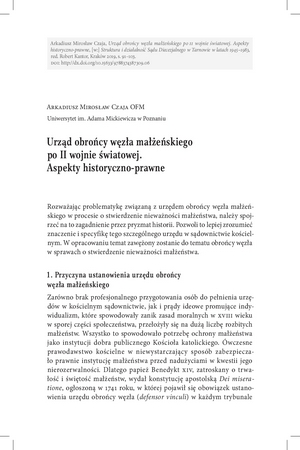 Urząd obrońcy węzła małżeńskiego po II wojnie światowej : aspekty historyczno-prawneUrząd obrońcy węzła małżeńskiego po II wojnie światowej : aspekty historyczno-prawne