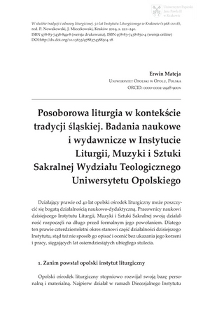 Posoborowa liturgia w kontekście tradycji śląskiej : badania naukowe i wydawnicze w Instytucie Liturgii, Muzyki i Sztuki Sakralnej Wydziału Teologicznego Uniwersytetu OpolskiegoPosoborowa liturgia w kontekście tradycji śląskiej : badania naukowe i wydawnicze w Instytucie Liturgii, Muzyki i Sztuki Sakralnej Wydziału Teologicznego Uniwersytetu Opolskiego