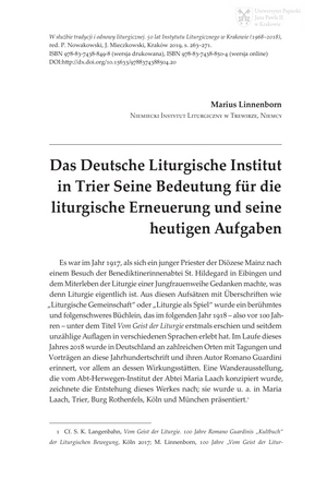 Das Deutsche Liturgische Institut in Trier Seine Bedeutung für die liturgische Erneuerung und seine heutigen AufgabenDas Deutsche Liturgische Institut in Trier Seine Bedeutung für die liturgische Erneuerung und seine heutigen Aufgaben