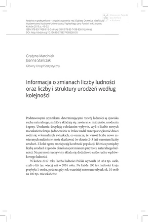 Informacja o zmianach liczby ludności oraz liczby i struktury urodzeń według kolejnościInformacja o zmianach liczby ludności oraz liczby i struktury urodzeń według kolejności