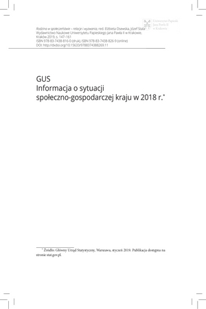 Słowa kluczowe: Rodzina , Sytuacja społeczna , Badania , Statystyka