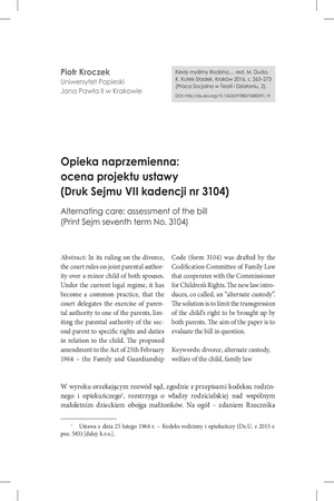Opieka naprzemienna : ocena projektu ustawy (Druk Sejmu VII kadencji nr 3104)