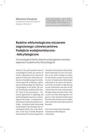 Rodzina wiktymologiczna reżyserem zagrożonego człowieczeństwa : podejście eudajmonistyczno-felicytologiczne