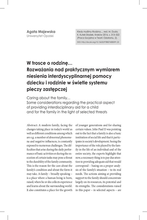 W trosce o rodzinę... : rozważania nad praktycznym wymiarem niesienia interdyscyplinarnej pomocy dziecku i rodzinie w świetle systemu pieczy zastępczejW trosce o rodzinę... : rozważania nad praktycznym wymiarem niesienia interdyscyplinarnej pomocy dziecku i rodzinie w świetle systemu pieczy zastępczej