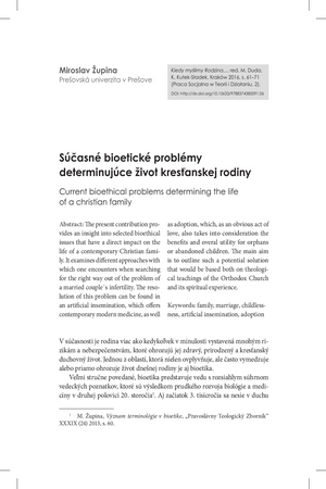 Súčasné bioetické problémy determinujúce život kresťanskej rodinySúčasné bioetické problémy determinujúce život kresťanskej rodiny