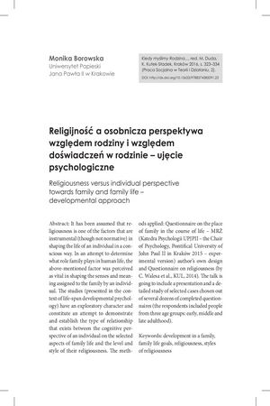 Religijność a osobnicza perspektywa względem rodziny i względem doświadczeń w rodzinie - ujęcie psychologiczneReligijność a osobnicza perspektywa względem rodziny i względem doświadczeń w rodzinie - ujęcie psychologiczne