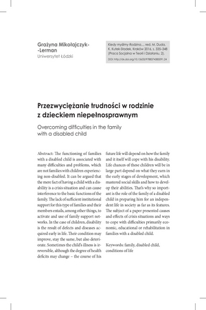 Przezwyciężanie trudności w rodzinie z dzieckiem niepełnosprawnymPrzezwyciężanie trudności w rodzinie z dzieckiem niepełnosprawnym