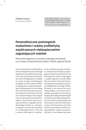 Słowa kluczowe: Personalizm , Rodzina , Profilaktyka