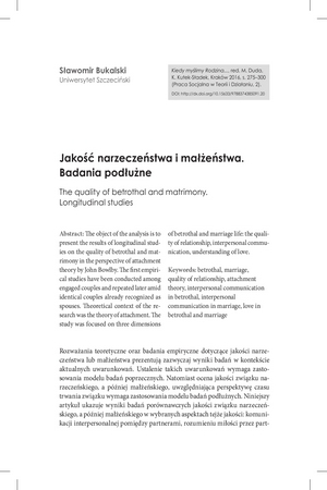 Słowa kluczowe: Narzeczeństwo , Małżeństwo , Jakość relacji , Komunikacja interpersonalna , Przywiązanie