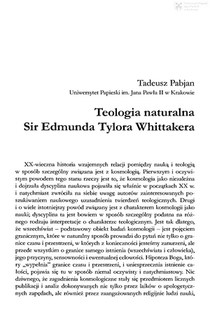 Słowa kluczowe: Teologia naturalna , Whittaker, Edmund Taylor (1873-1956) - krytyka i interpretacja
