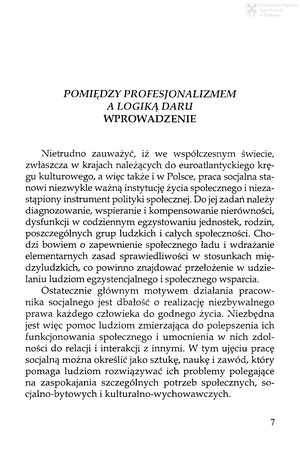 Pomiędzy profesjonalizmem a logiką daru : wprowadzeniePomiędzy profesjonalizmem a logiką daru : wprowadzenie