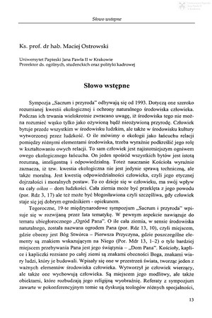 Słowa kluczowe: Przyroda , Sanktuaria chrześcijańskie , Słowo wstępne