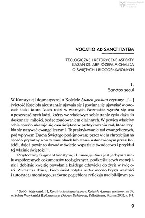 Vocatio ad sanctitatem : teologiczne i retoryczne aspekty kazań ks. abp. Józefa Michalika o świętych i błogosławionychVocatio ad sanctitatem : teologiczne i retoryczne aspekty kazań ks. abp. Józefa Michalika o świętych i błogosławionych