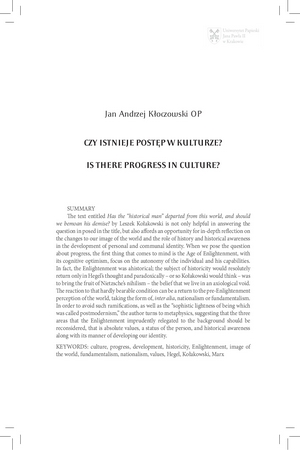 Słowa kluczowe: Kultura , Postęp , Rozwój , Historia , Oświecenie , Fundamentalizm , Nacjonalizm , Wartości , Hegel , Kołakowski , Marks