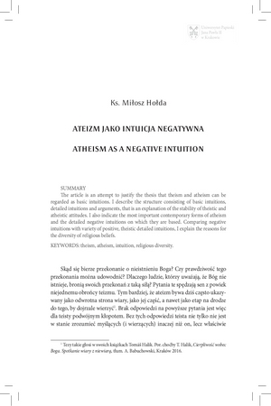 Słowa kluczowe: Teizm , Ateizm , Intuicja , Różnorodność religijna