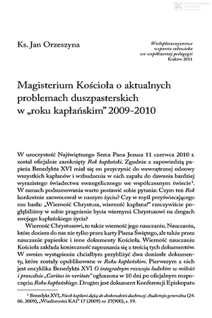 Magisterium Kościoła o aktualnych problemach duszpasterskich w "roku kapłańskim" 2009-2010Magisterium Kościoła o aktualnych problemach duszpasterskich w "roku kapłańskim" 2009-2010