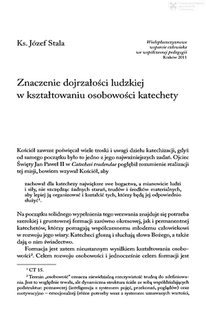 Znaczenie dojrzałości ludzkiej w kształtowaniu osobowości katechetyZnaczenie dojrzałości ludzkiej w kształtowaniu osobowości katechety
