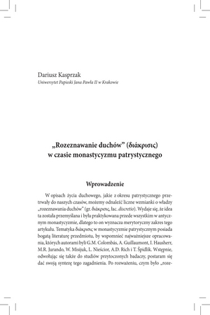 "Rozeznawanie duchów" (diάkrisis) w czasie monastycyzmu patrystycznego"Rozeznawanie duchów" (diάkrisis) w czasie monastycyzmu patrystycznego