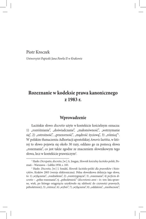 Słowa kluczowe: Discretio , Rozeznanie , Kodeks prawa kanonicznego , Prawodawca