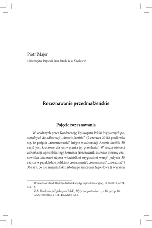 Słowa kluczowe: Rozeznanie , Amoris laetitia , Franciszek (papież ; 1936- )