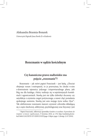 Słowa kluczowe: Rozeznanie , Amoris laetitia , Proces nieważności małżeństwa , Nowość kodeksu prawa kanonicznego , Sedzia kościelny