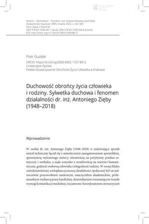 Duchowość obrońcy życia człowieka i rodziny : sylwetka duchowa i fenomen działalności dr. inż. Antoniego Zięby (1948-2018)Duchowość obrońcy życia człowieka i rodziny : sylwetka duchowa i fenomen działalności dr. inż. Antoniego Zięby (1948-2018)
