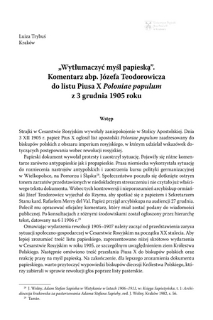 “Wytłumaczyć myśl papieską”. Komentarz abp. Józefa Teodorowicza do listu św. Piusa X pt. “Poloniae populum” z 3 grudnia 1905 roku“Wytłumaczyć myśl papieską”. Komentarz abp. Józefa Teodorowicza do listu św. Piusa X pt. “Poloniae populum” z 3 grudnia 1905 roku