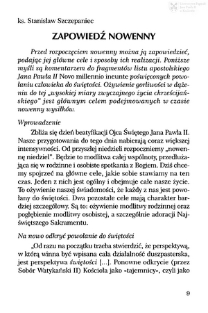 Słowa kluczowe: Jan Paweł II (papież ; 1920-2005) , Beatyfikacja , Świętość , Nowenna