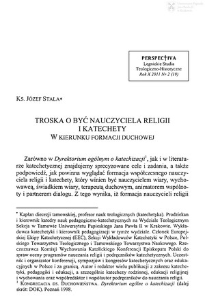 Troska o być nauczyciela religii i katechety : w kierunku formacji duchowejTroska o być nauczyciela religii i katechety : w kierunku formacji duchowej
