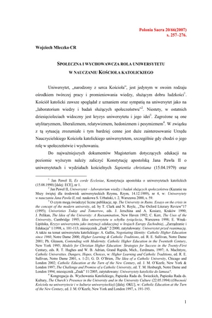 Społeczna i wychowawcza rola Uniwersytetu w nauczaniu Kościoła KatolickiegoSpołeczna i wychowawcza rola Uniwersytetu w nauczaniu Kościoła Katolickiego